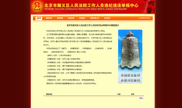 顺义法院建工作人员违纪违法举报中心网站