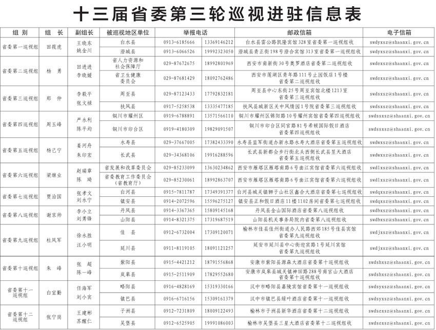 陕西省委12个巡视组日前完成对24个地区和单位党组织的进驻,十三届省委第三轮巡视全面展开。