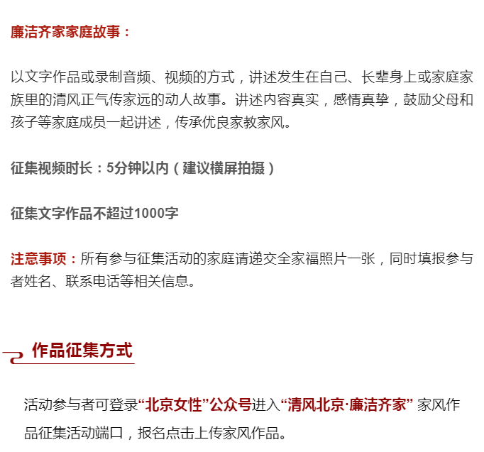“清风北京 廉洁齐家”家风作品征集活动开始啦!