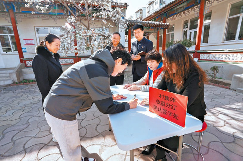 纪检监察干部现场监督检查村集体收益分红发放情况。