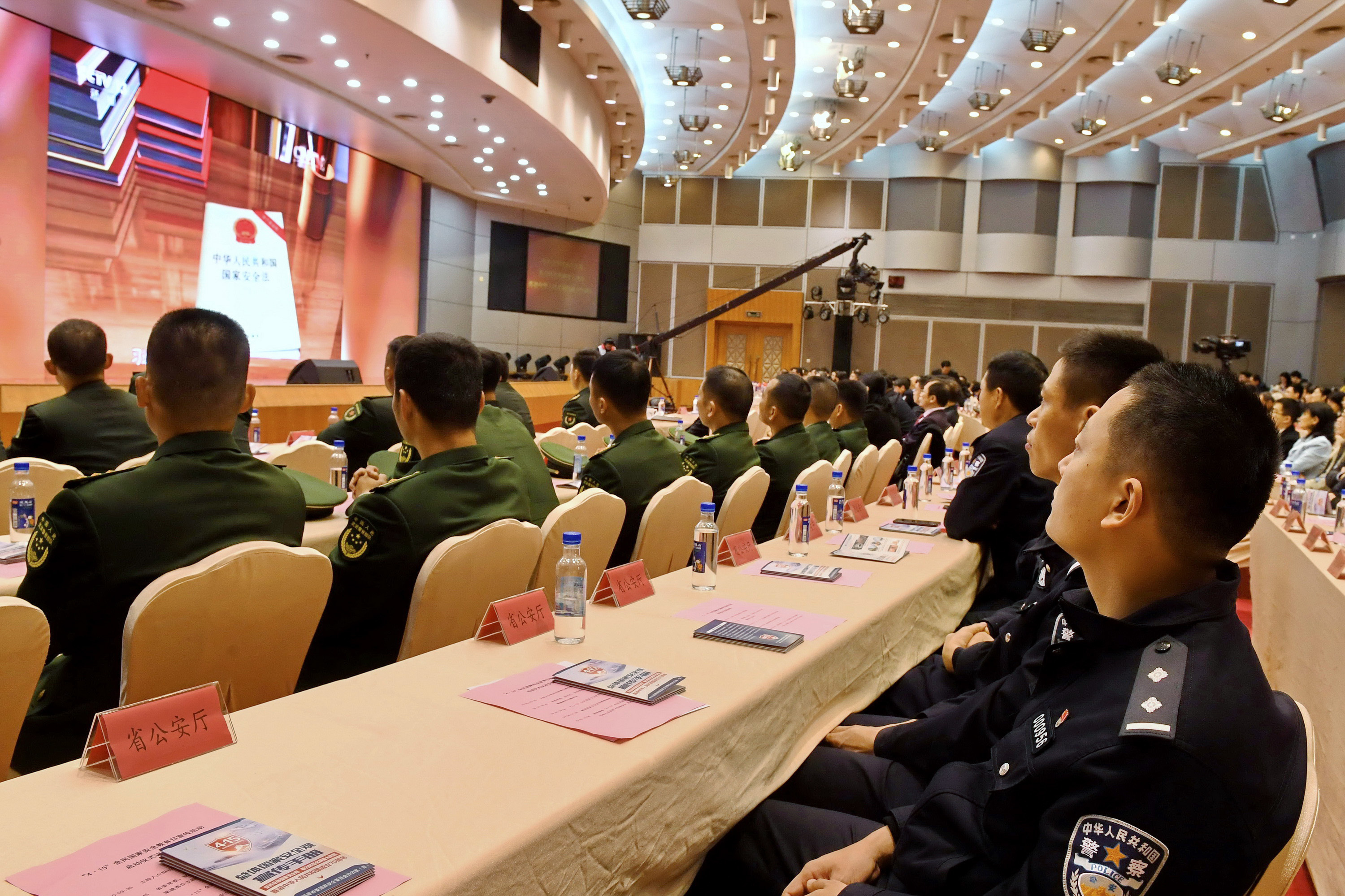 4月15日,福建省“4·15”全民国家安全教育日宣传教育活动在福州启动,参加启动仪式人员观看国家安全宣传教育片。