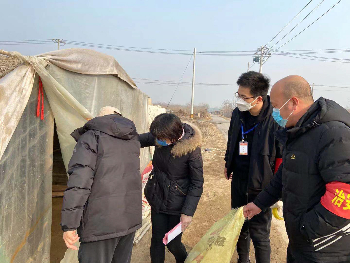 大兴区纪委监委派驻黄村镇王立庄驻村干部与村级工作人员一同排查农用地大棚是否有未登记的私自返京人员。 李梦瑶 摄