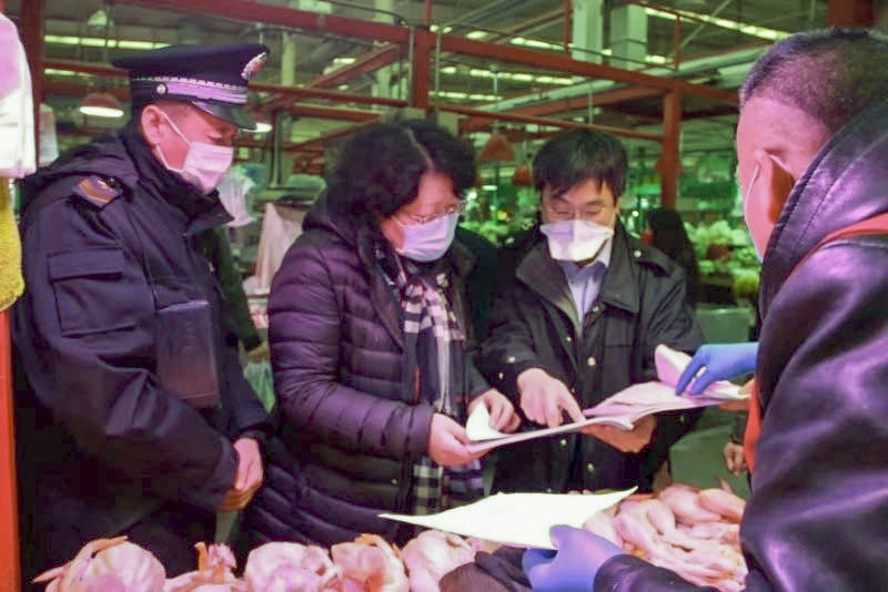 驻市市场监管局纪检监察组紧紧围绕有关部门在价格监管、关闭野生动物市场及交易平台、食品和防护用品质量安全、医疗物资保障等方面履职情况,下沉各区局、商超、农贸批发市场、餐饮等重点地区、重点点位,开展监督检查。图为该组到农副产品批发市场开展实地检查。