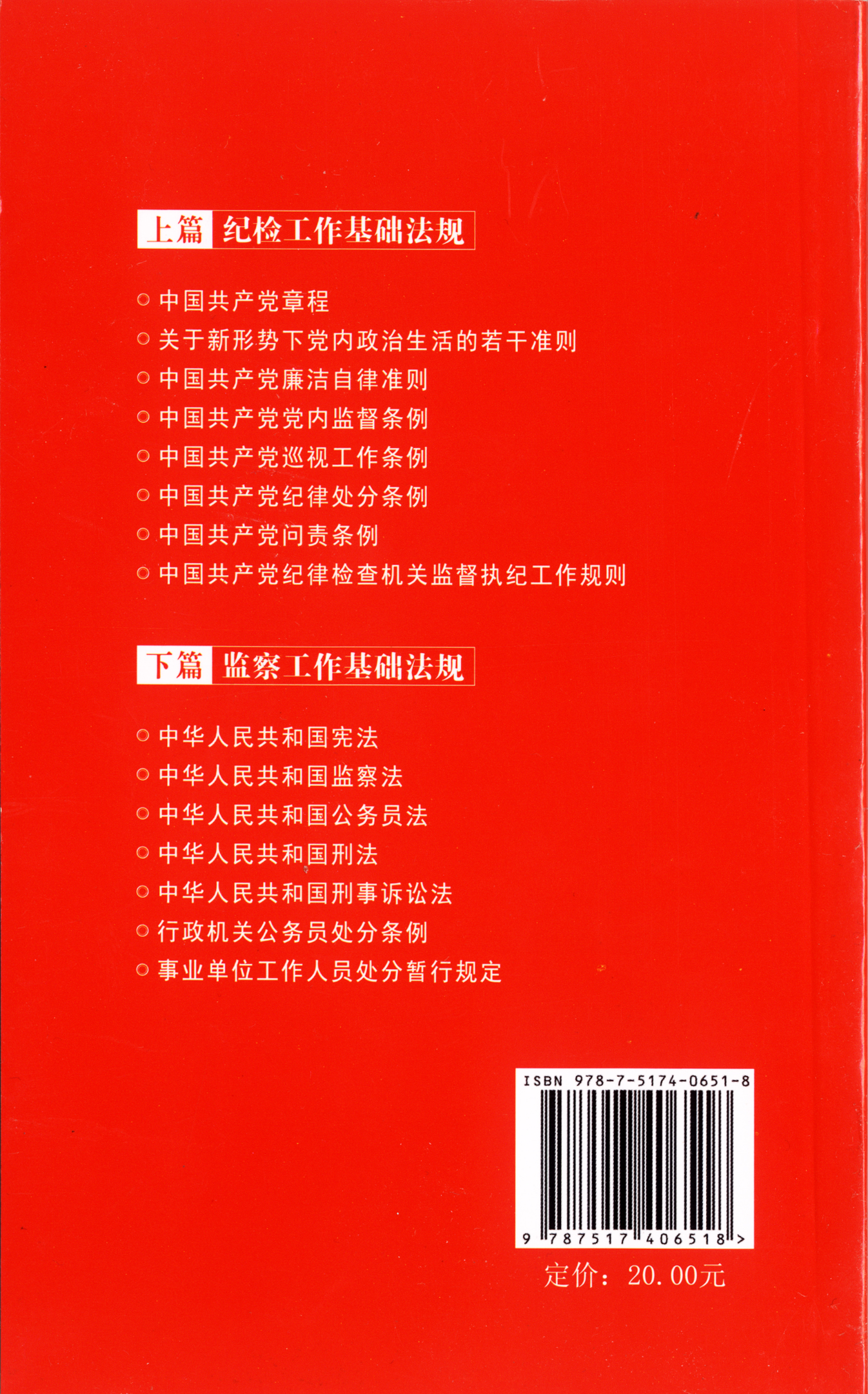 本书是一本口袋书,方便携带、便于查阅。汇集15部纪检监察工作基础法规,分为上下两篇。上篇收录8部纪检工作基础法规,《中国共产党章程》《中国共产党纪律处分条例》等;下篇收录7部监察工作基础法规,《中国人民共和国宪法》《中华人民共和国监察法》《中华人民共和国刑法》《中华人民共和国刑事诉讼法》等,其中刑法和刑事诉讼法精选了与纪检监察工作密切相关的条文。