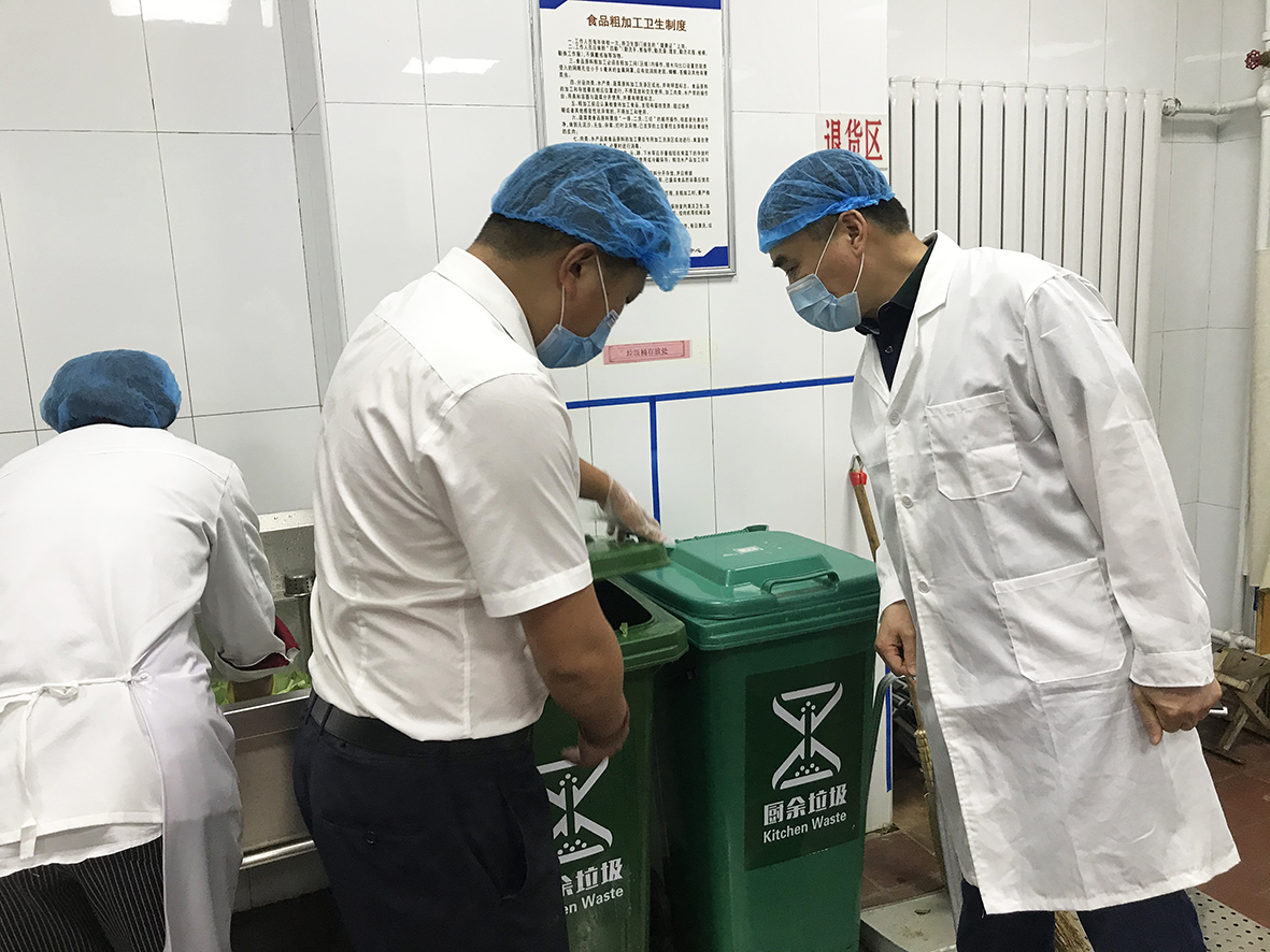 区纪委监委第二派驻纪检监察组到办公区食堂监督检查区机关事务管理服务中心推动开展垃圾分类工作情况。于虹 摄