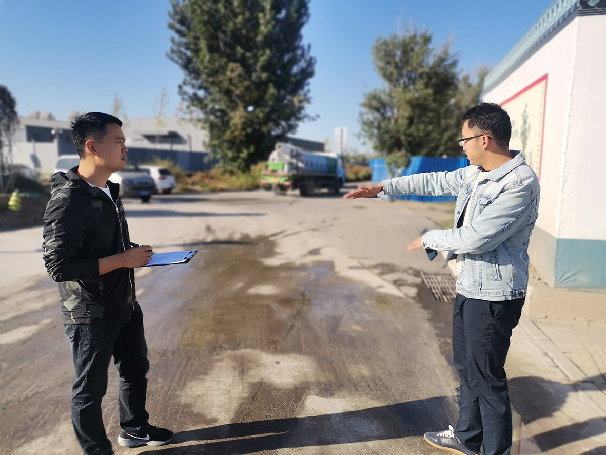 潞源街道纪工委监察组前往兆善大街,对12345热线反映的问题进行实地核查。姬景浩 摄