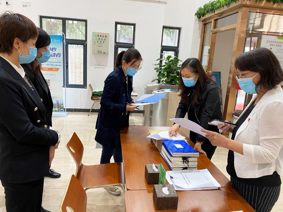 区纪委监委第二联合派驻纪检监察组对区机关事务服务中心食堂采购台账进行抽查。李峥 摄