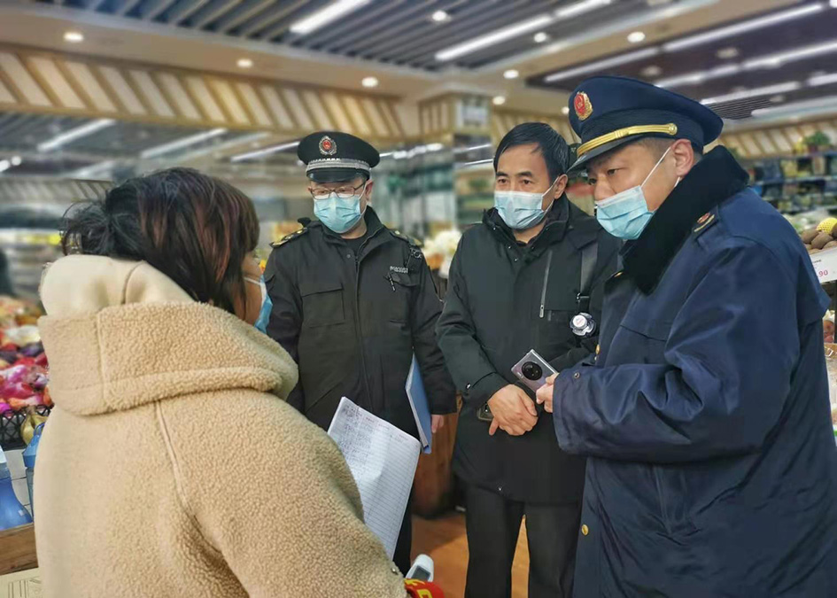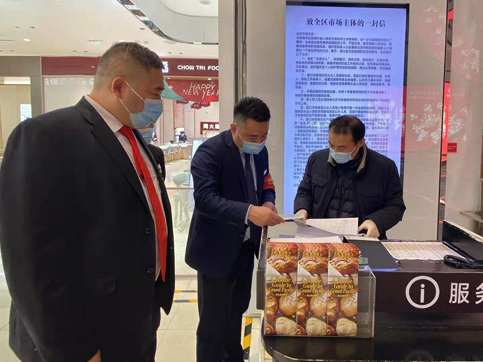 联合区市场监管局,对西单商圈比较集中的重点主体及其主体内的经营商户进行监督检查,督促其做好疫情防控和消杀。