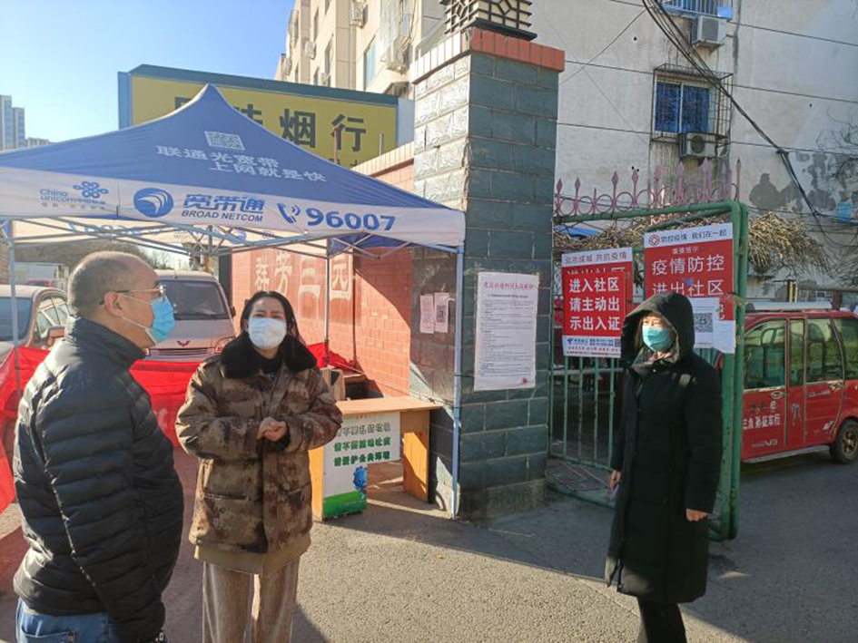 驻区国资委纪检监察组赴群芳三园社区开展疫情防控监督检查,提醒工作人员做好测温、外来人员登记等工作。刘闯 摄
