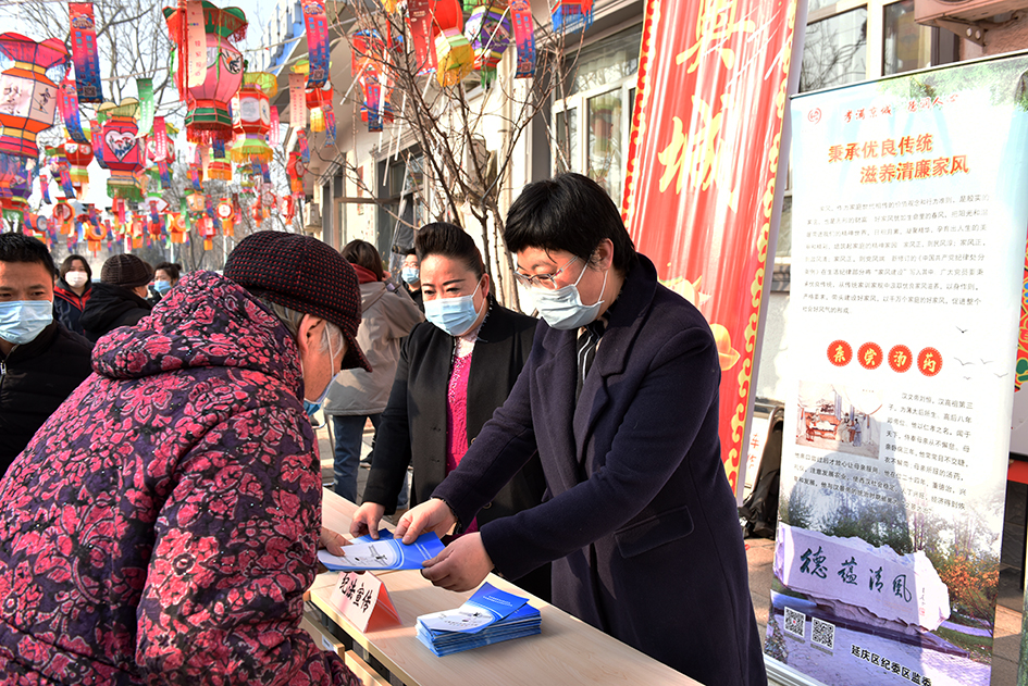 在元宵节来临之际,延庆区各级纪检监察组织落实疫情防控要求,采取小而精的活动形式,将廉洁文化融入赏花灯、猜灯谜等传统节日活动中,让市民在欢度佳节的同时,感受廉洁文化的熏陶。