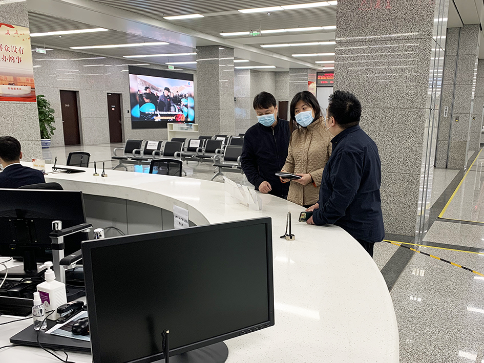 驻市政府办公厅纪检监察组对市政务服务大厅服务群众和疫情防控工作开展监督检查。驻市政府办公厅纪检监察组 供图