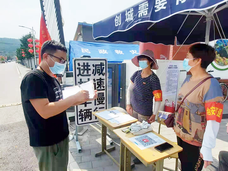 门头沟区妙峰山镇纪委对丁家滩村防疫卡口开展疫情防控监督检查。宋京晨 摄