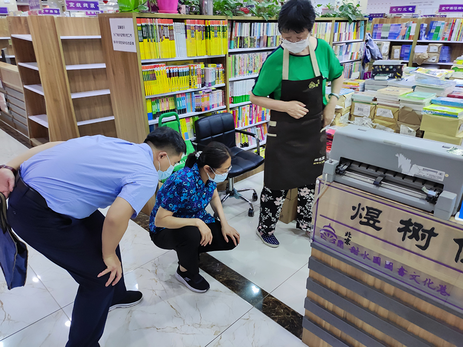 驻市委宣传部纪检监察组到书店检查疫情防控措施落实情况。驻市委宣传部纪检监察组供 图