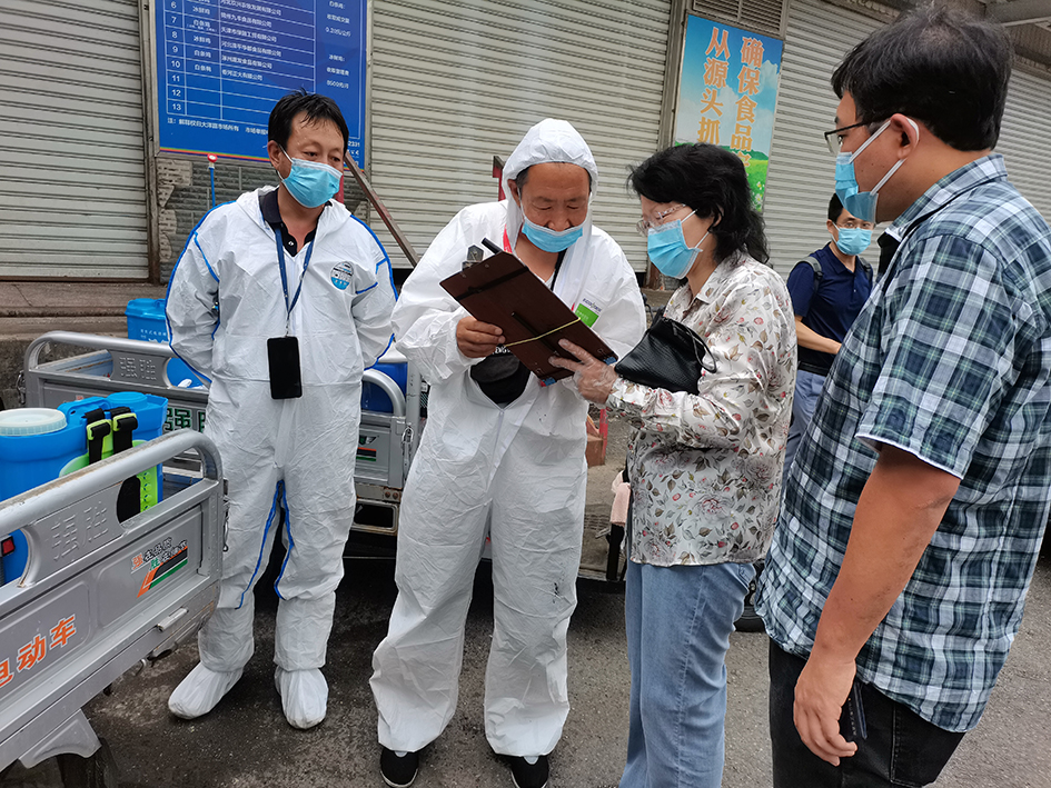 驻市市场监管局纪检监察组会同市市场监管局食品市场处、食品药品安全协调处到朝阳区大洋路批发市场开展“四不两直”监督检查,重点查看市场疫情防控工作措施落实情况及冷链食品安全管理情况。乔瑛琳 摄