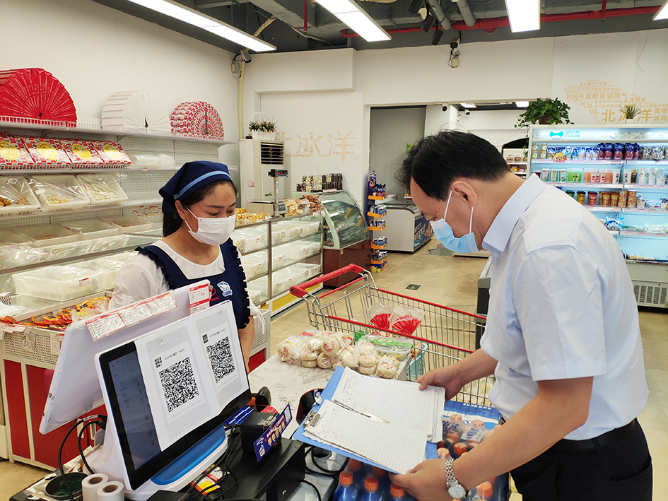 一轻控股纪委工作人员检查百年义利(广渠门店)疫情防控工作。蒋悦 摄