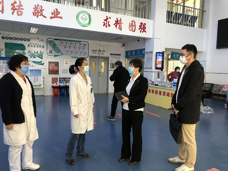 石景山区纪委监委专项监督检查组联合区卫生监督所对区内部分医疗机构落实预检分诊、测温扫码、医务人员培训、一米线、医废处理、人员健康监测与核酸检测等院感防控措施进行现场监督检查。闫凤良 摄