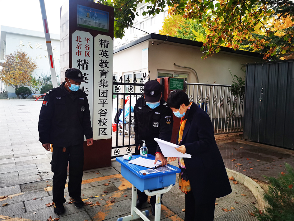 平谷区纪委监委驻区委教工委纪检监察组对学校落实人员信息排查、消毒测温、疫苗接种等疫情防控情况进行监督检查。范红秋 摄
